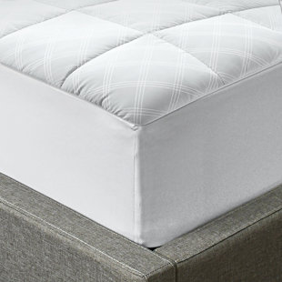 Protect your mattress without sacrificing comfort with this waterproof mattress pad. Its diamond-quilted peak is blimp with hypoallergenic downwards-culling make full for extra softness, while the Scotchgard end wicks abroad moisture to protect your mattress. Rounding out the design is the fully elasticized skirt that fits snuggly effectually mattresses up to 18" thick. Crafted of 100% polyester in a clean white hue, this mattress pad tin can be machine washed and tumble dried for fuss-free budget.